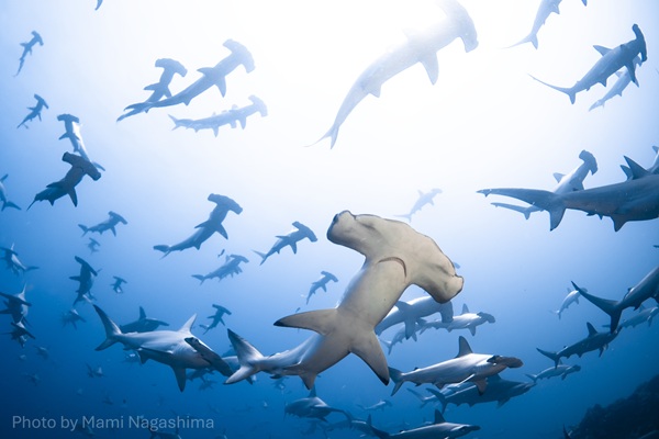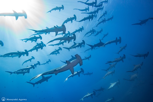הטבע המרשימות בעולם הצלילה: התכנסות עונתית של להקות עצומות של כרישי פטיש, עשרות ולעיתים מאות