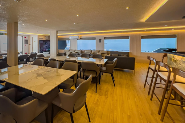 בסיפון המרכזי סלון מרווח ומעוצב בסגנון מודרני, מסך '65 עם ערוצי הבית, חיבור ללוויין וסרטים.