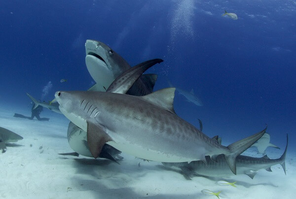 במים רדודים אפשר לחוות מפגש קרוב עם משפחות של כרישי טייגר,