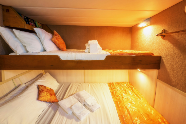 שבע קבינות בסיפון התחתון עם מיטה זוגית ומיטה עליונה,