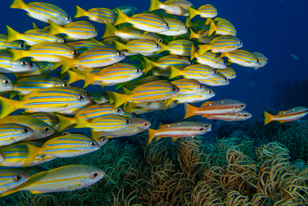 ניתן לראות כרישי ריף שונים, להקות ברקודות, צבי ים ועושר ביולוגי רב.