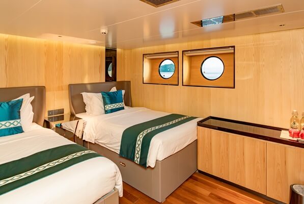 הקבינות יכולות להות במתכונת של מיטה זוגית או שתי מיטות נפרדות, וכולן מאובזרות ומעוצבות בקפדנות.